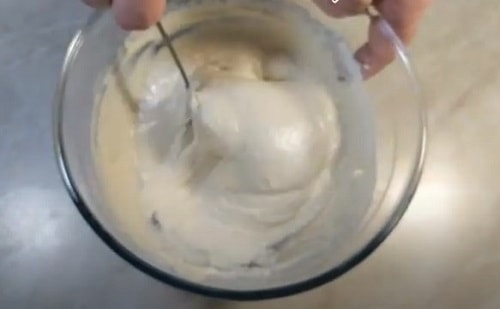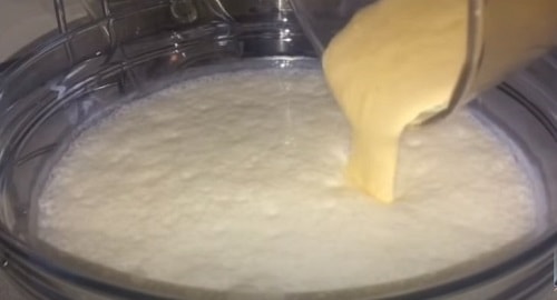 Акуратно перелийте збите яйце в кефірну суміш. Розмішайте.