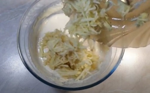 - Потріть крупною стружкою яблуко, додайте в масу.