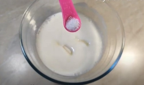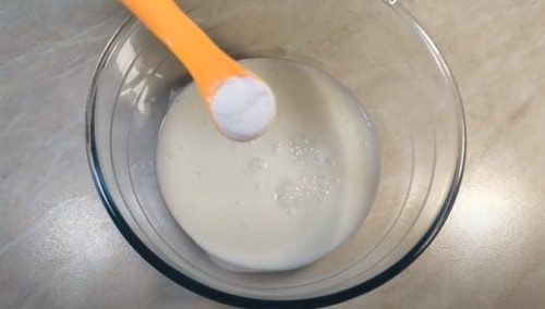 - Трохи зігрійте напій, додайте сіль з цукром, соду.