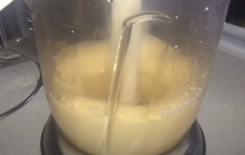 - Засипте борошно, попрацюйте блендером, замісивши тісто.