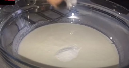 Налийте кефір кімнатної температури в миску, засипте харчову соду, стільком людям. Гасити соду не потрібно, кисломолочний напій зробить це за вас.