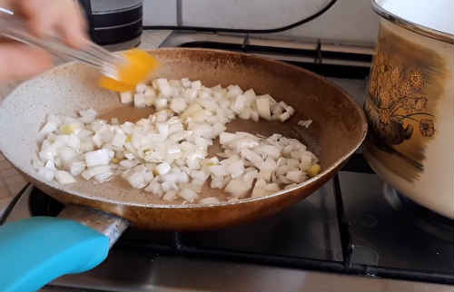 Паралельно займіться підготовкою інших інгредієнтів. Наріжте цибулю.