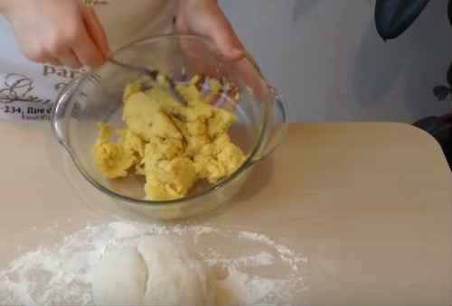 - Додайте в миску з пюре інші, перераховані в рецепті інгредієнти. Замісіть тісто. Обов’язково спробуйте, відрегулюйте на смак сіль.