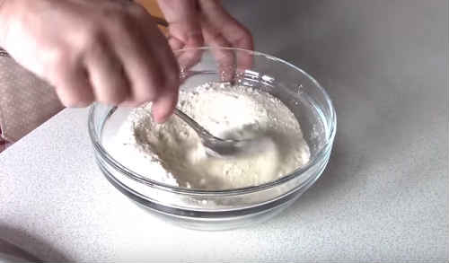 Надішліть інші сипучі компоненти, знову гарненько розмішайте.
