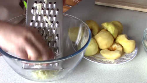 Яблука беріть на свій розсуд, підійдуть кислі сорти, і солодше. Тільки, виходячи з цього, варіюйте кількість цукру в більшу або меншу сторону. Очистіть їх від шкірки, потріть великої стружкою. Додайте корицю, перемішайте. Якщо під рукою виявиться трохи лимонного соку, збризніть нарізку, щоб часточки не потемніли.