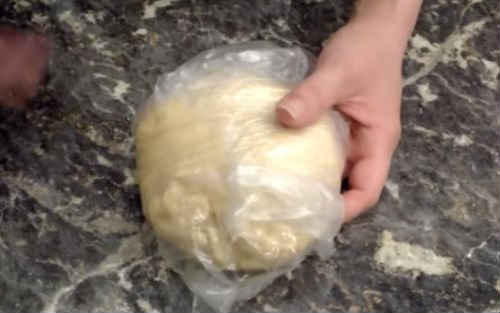 - Швидко перемішайте, зробіть ком. Покладіть в пакет і рівно годину потримайте в холодильнику.