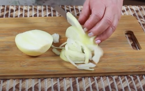 Настрогайте цибулини півкільцями.
