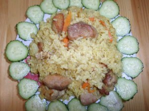 15. Плов в духовці зі свининою готується приблизно 50 хвилин. За цей час ви встигнете не тільки накрити стіл, але і приготувати салат на свій смак.
