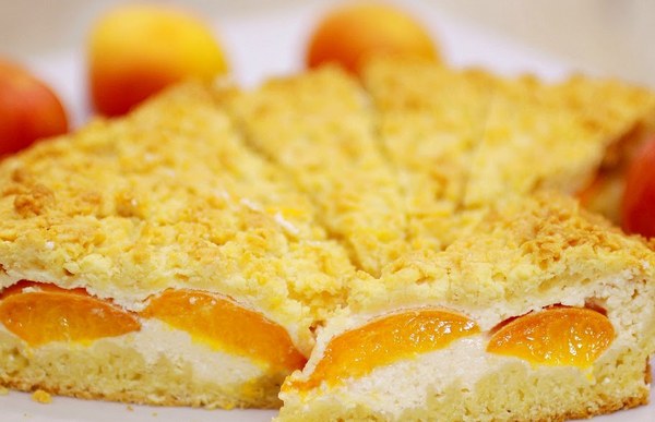 Наповнюємо основу пирога, розрівнюємо сир, присипаємо зверху залишками крихти. Відправляємо пиріг в духовку при температурі 200 градусів на 45 хвилин.