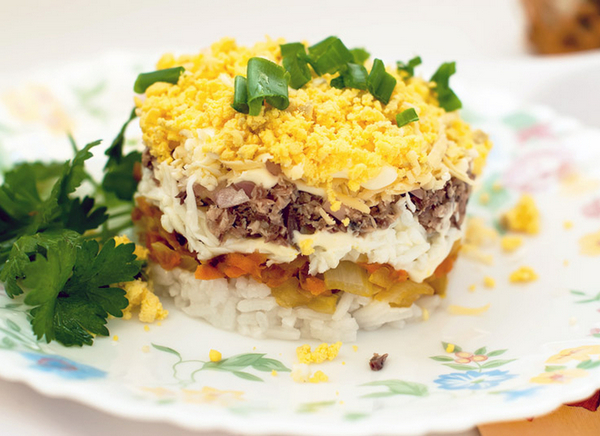 Приготовлена Мімоза з рисом буде більш ситної, ніж класичний варіант приготування салату. Для його приготування вам будуть потрібні: