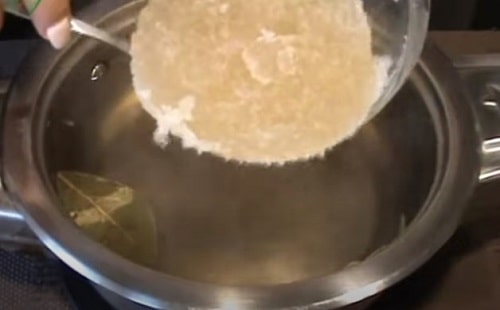 - Знову закип’ятити розсіл, додайте гранули желатину.