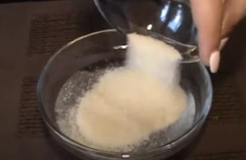 - Замочіть желатин. Як правило, на упакуванні є інструкція, подивіться там кількість води. Почекайте, коли порошок розбухне.