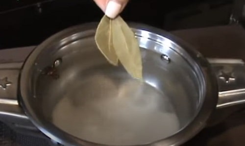 - Підготуйте маринад. Закип’ятіть воду, закладіть спеції, горошини перцю, лавровий лист. Вимкніть конфорку, влийте набряклий желатин і столовий оцет. Сумлінно розмішайте, щоб кристали розпустилися.