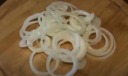 - Наріжте головки цибулі кільцями, болгарський овоч шматочками, часник поділіть пластинами.