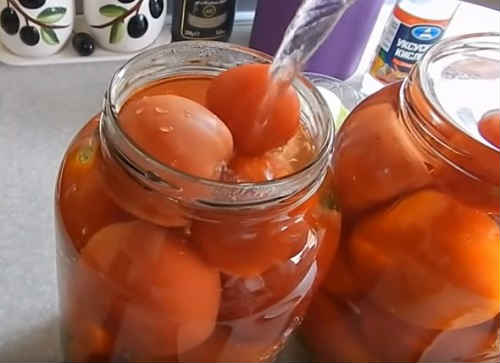 Класичний рецепт консервування томатів, з грамотно підібраними пропорціями спецій. Помідори виходять кисло-солодкими, з смачним розсолом, який також можна випити до крапельки.