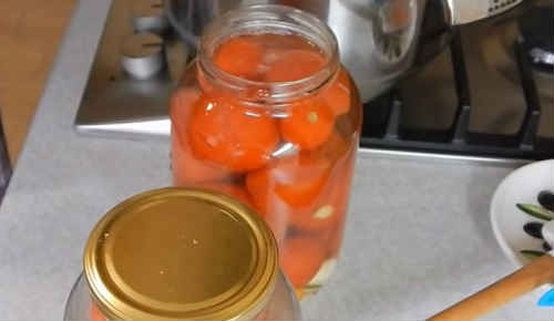 Господиня відео докладно розповідає про маринуванні солодких помідорів на зиму в банку. Дотримуйтесь її порад, і на вашому столі з’являться незвичайні консервовані помідори. Вдалих вам заготовок на зиму і смачних закусок!