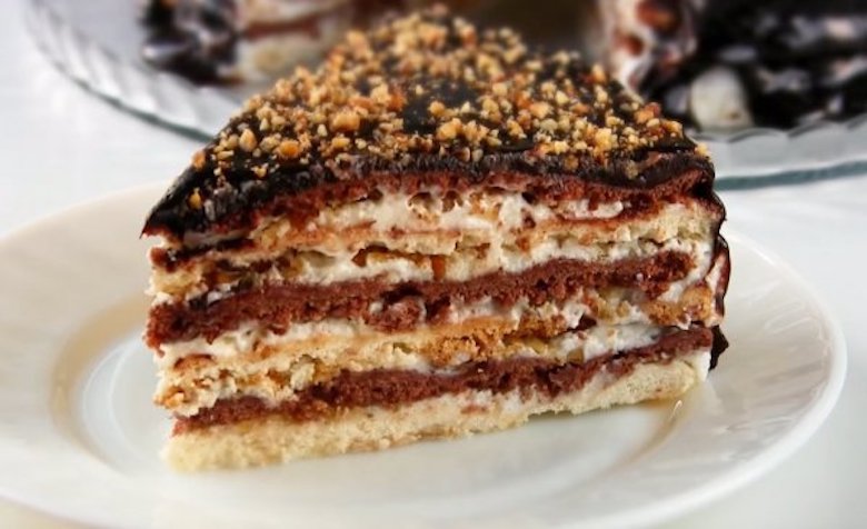 Це літній варіант шоколадного десерту. Основа готується з печива, масла і молока. Простий і смачний шоколадний торт виходить легким, в міру солодким і неймовірно ніжним. Ще одна перевага десерту – приготування не вимагає випічки, а значить в літній спекотний день духовку включати не доведеться.