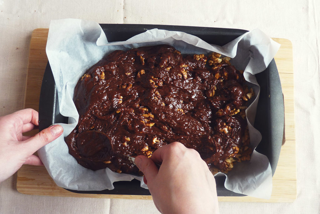 - Брати з духовки і ділити на порції шоколадне тістечко Брауні можна, як він трохи охолов.