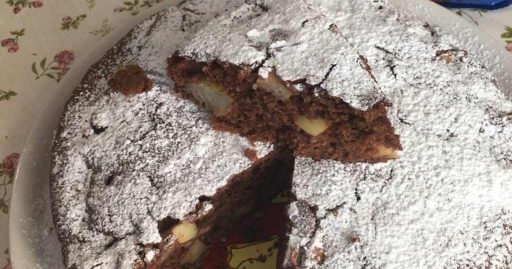 Шоколадний манник в мультиварці з яблуками