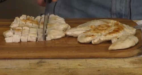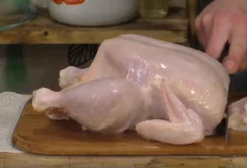 Якщо взяли курку цілком, обробіть її на шматочки. Крильця, стегенця відкладіть до кращих часів, вони підуть на приготування інших страв. Остов птиці відправте в каструлю на приготування насиченого бульйону для різотто. Безпосередньо для різотто нам знадобиться грудна частина птиці.