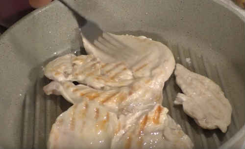 Посмажте з одного боку буквально пару хвилин, потім переверніть. Готуйте ще пару хвилин, переверніть. Через пару хвилин обсмажування зробіть надріз ножем. Якщо рожевого соку майже немає, м’ясо можна діставати. Не дивуйтеся того, що курочка сирувата, попереду її чекає термічна обробка з рисом.