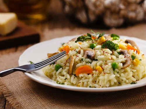 Технологія приготування в даному випадку дещо порушена, але страва вийде відмінного смаку. Овочі відмінно доповнюють різотто, роблячи його більш ситним та смачним. Традиційні овочі, які кладуться в італійський делікатес, ви побачите в списку інгредієнтів. Інший раз я кладу цвітну капусту, стручкову квасолю. Дуже подобається з кабачками і кукурудзою.