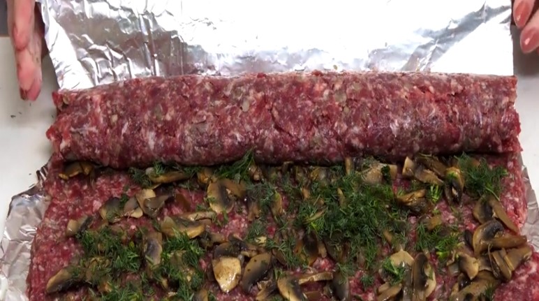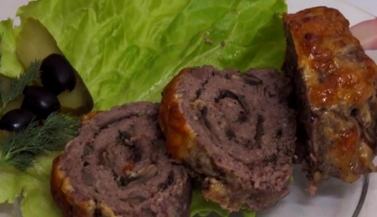Дуже смачний рулетик з фаршу з грибами