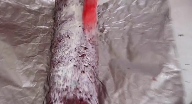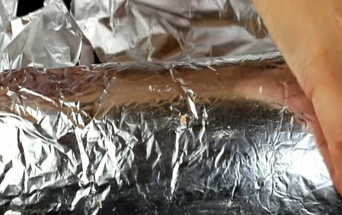 8. Рулет обертається у фольгу і відправляється в розігріту до 200С духовку. Випікатися повинен 60 хвилин.