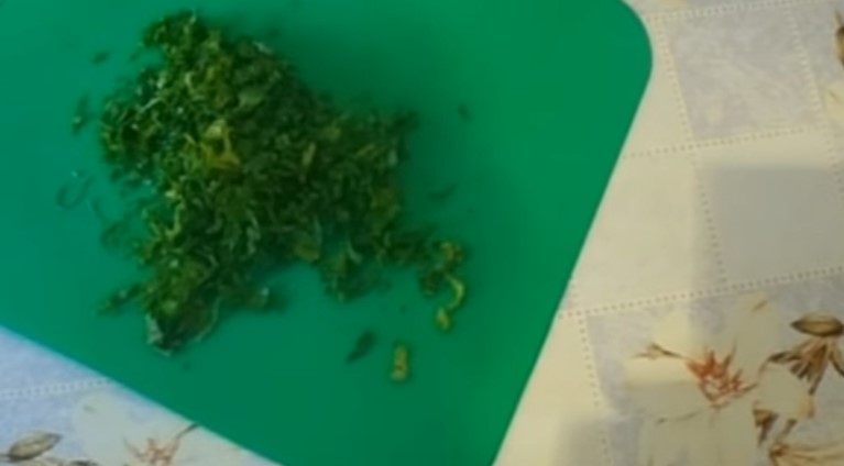 4. Зелень миють і дрібно нарізати. Можна використовувати цибулю, кріп або петрушку, в залежності від того, який саме віддається перевага в сім’ї.