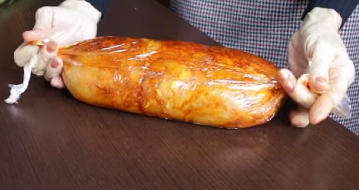 Домашній варений рулет з курки з желатином в харчовій плівці