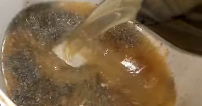 3. У невелику піалу висипаємо сухий желатин, який заллємо гарячою водою (не окропом!) і будемо розмішувати суміш до повного розчинення сухого речовини.