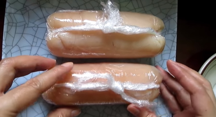 3. Щільно загорніть курку в харчову плівку, щоб надати їм форму, скрутіть кінці плівки і зв’яжіть їх. Потім охолодіть вироби в холодильній камері протягом 1 години.