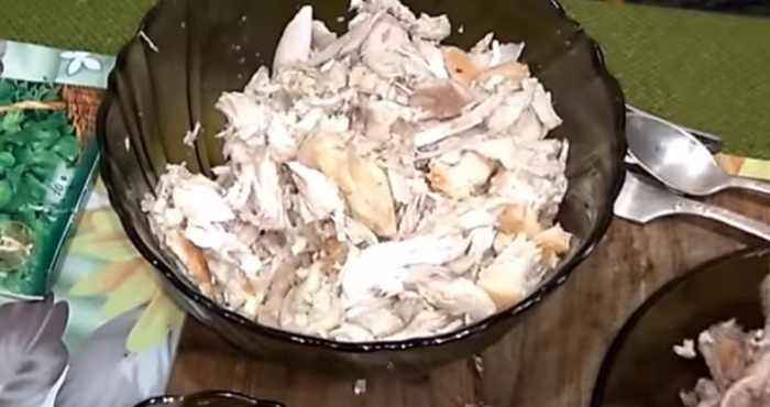 2. Готового м’яса даємо трохи охолонути, а потім відділити м’якоть від кісток.