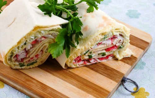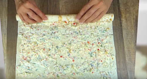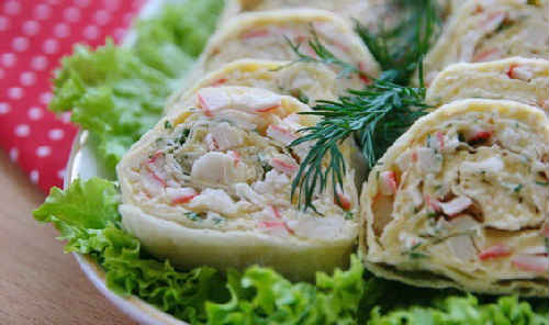 Рулет з лаваша з крабовими паличками і сиром і яйцями