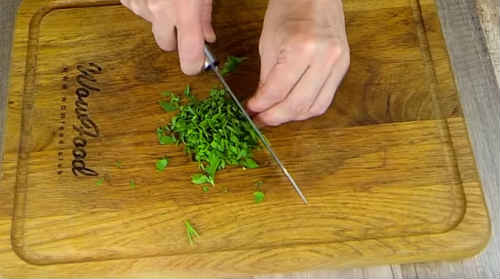 Порубаєте дрібно-дрібно кріп. Якщо любите різноманітну зелень, додайте за бажанням.
