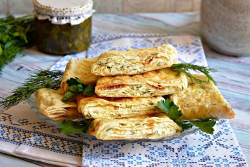 Почнемо з легкого рецепту не солодкої закуски з сиром. За бажанням в начинку можна додати шинку, ковбасу, помідори.