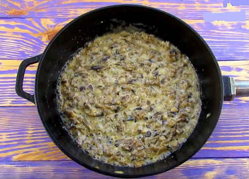 В кінці влийте сметану і роздавлений пресом часник. Розмішайте, протушкувати кілька хвилин і вимкніть.