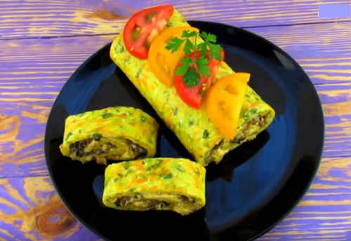 Рулет з кабачків з грибами в духовці