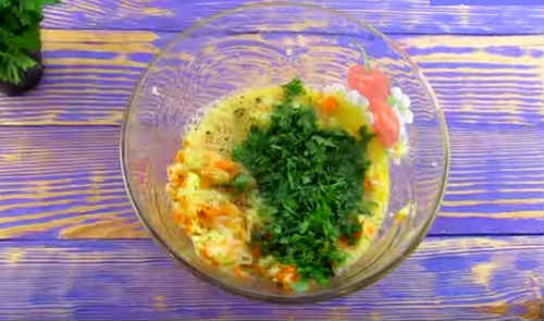 Порубаєте петрушку, засипте в тісто, гарненько розмішайте.