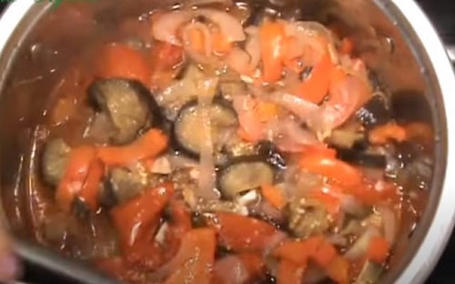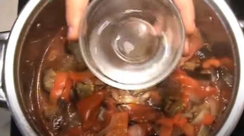 - Залийте овочі томатним соком або розведеною томатною пастою. Поставте варитися.