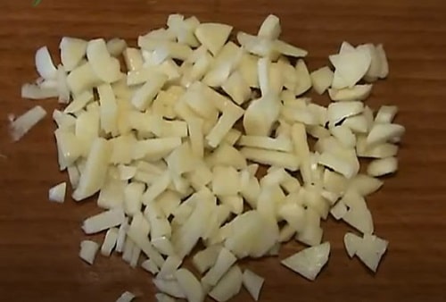 Подрібніть часникові зубчики. Не рубайте в крихту, інакше ризикуєте в салаті їх не побачити.