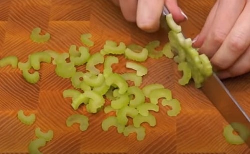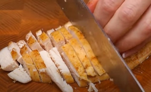 Курячу грудку також відваріть напередодні приготування. Остудіть, наріжте смужками або брусочками.