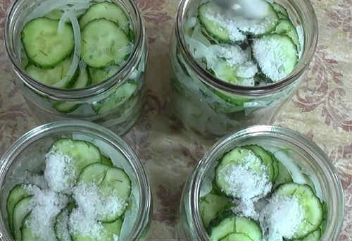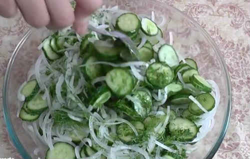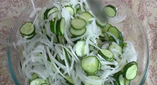 У заготівлі допускається використовувати переросли огірки. Однак, які з них необхідно видалити насінну частину, вони можуть зіпсувати смак салату. Якщо попалися зів’ялі зеленці, беріть їх, не бійтеся. Але попередньо вимочити холодною водою 2-3 години, щоб відновити їх щільність.