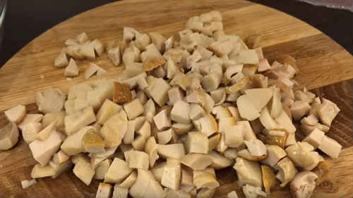 Наріжте кубиками куряче м’ясо.
