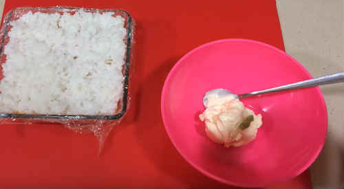 Зваріть рис для суші, заправте, додавши сіль, оцет, цукор.