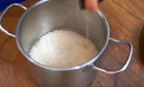 - Промийте крупу в декількох водах, щоб змити зайвий крохмаль.