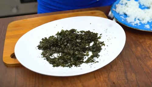 Візьміть пару листів норі, будь-яким способом подрібніть в крихту.