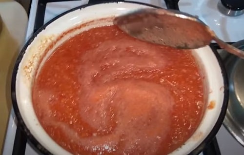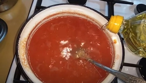 Спрощений спосіб заготівлі, з томатною пастою. Вам не доведеться варити соус окремо, досить простий розвести водою пасту.