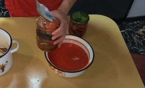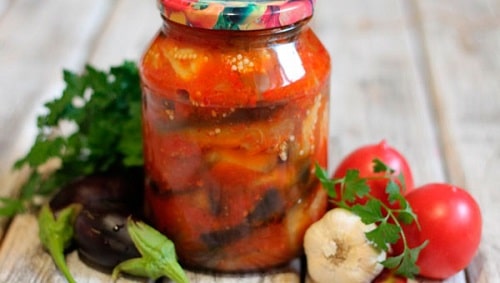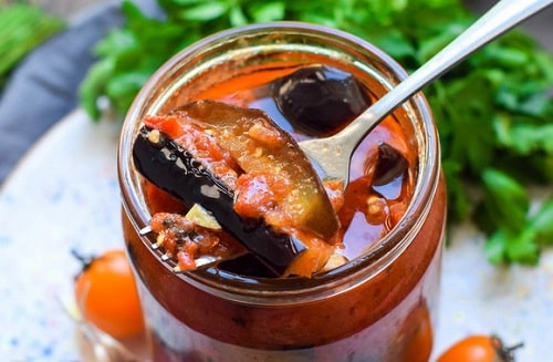 Зимовий салат «Тещин язик» з баклажанів з томатним соусом