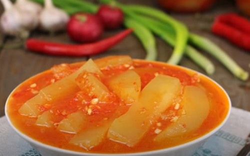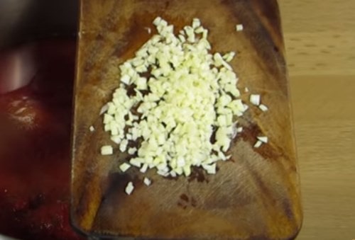 Ще одна версія знаменитого салату, який використовують в якості самостійної закуски, гостренького соуси до макаронів, або додають у борщ, замість заправки. Якщо Тещин язик здасться вам занадто гострим, уполовиньте кількість часнику.